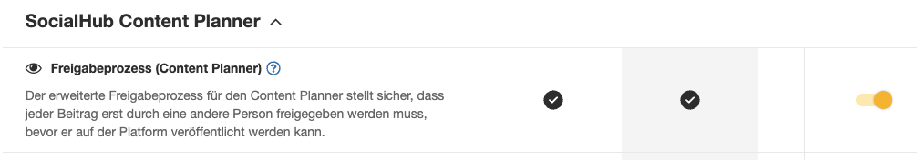 Mit dem Freigabeprozess kann ein Vier-Augen-Prinzip für alle Inhalte aktiviert werden, die über den Content Planner veröffentlicht werden.