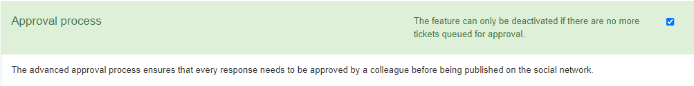 Avec le processus d'approbation, un principe des quatre yeux peut être activé pour toutes les réponses publiées via la Messagerie. Cela évite les erreurs grammaticales et les déclarations incorrectes et augmente la qualité de l'engagement client.
